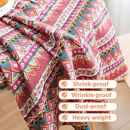 DINGC Tovaglia Rotonda Cotone e Lino con Motivo a Triangolo Rosso150cm, Tovaglia Tonda Lavabile Antipolvere, Tovaglia Tavola Rotonda per Tavolo da Pranzo Soggiorno Picnic