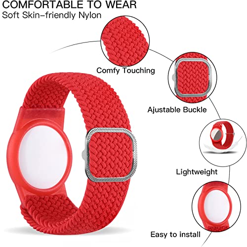Dingfeiyu Cinturino Compaibile con AirTag, Custodia da polso bambini Airtag, Anti-smarrimento e Anti-graffio Lavabile Braccialetto Airtags per Bambini (rosso)