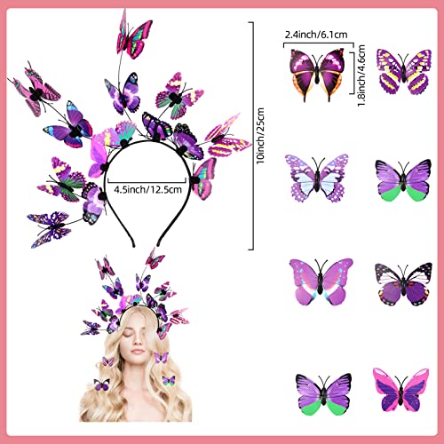 Dingfeiyu Farfalla Fascinator, Cerchietto Farfalla Bambina, 8pcs Casuale Farfalla Mollette per Capelli Donna, Accessori Capelli Sposa Compleanno Festa (Viola)