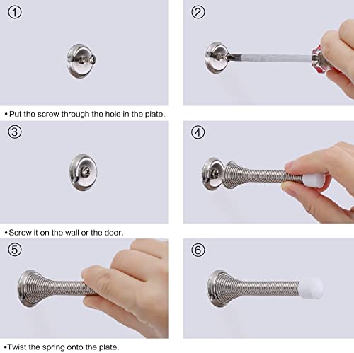 DINGFENG Fermaporta a Molla in 6 Pcs, Fermaporta in Metallo, Fermaporta Sospeso, Fermaporta, Pezzo di Fissaggio Porta, Usato Per Proteggere Pareti e Porte, Adatto Per Case, Scuole (Argento)