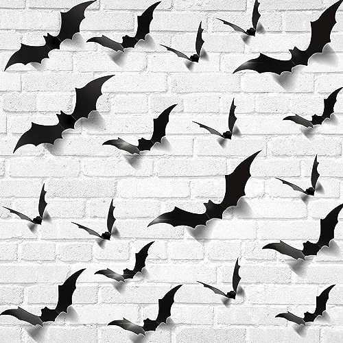 DINGFENG 60 Pezzi Halloween 3D Pipistrelli Decorazione, Adesivo Pipistrello, Adesivo per Porta Finestra di Halloween, Riutilizzabili, per La Decorazione della Finestra di Casa (Nero)