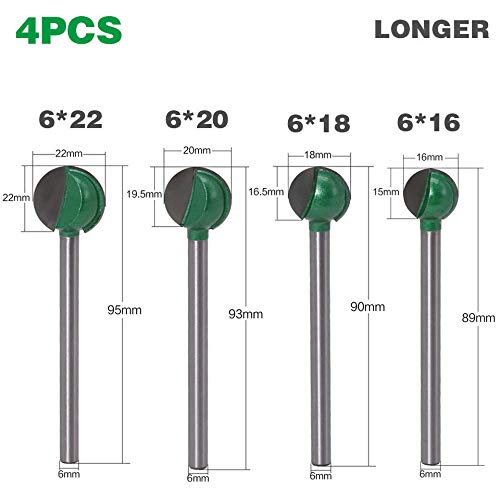 DingGreat 4 Pezzi 6mm Gambo Fresa a forma di sfera, 16/18/20/22mm fresa per fresa per lavorazione del legno, Lavorazione Del Legno A Sfera Forma Fresa Taglio Strumento