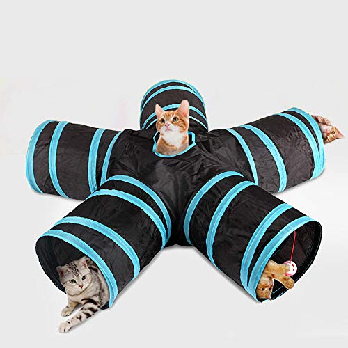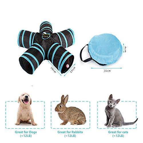 DingGreat Tunnel per Gatti, Tunnel Giocattolo per Gatti a 5 Vie, Tubo Pieghevole per Giochi per Animali Domestici con Campana e Custodia per Gatti, Cuccioli, Conigli, porcellini d'India