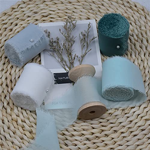 DINGM Fatti a Mano 4PCS 4cmx5.5m Chiffon di Seta Fringe Ribbon Bordo sfilacciato Inviti di Nozze Nastro Bouquet Confezione Regalo DecorazioneFlatlay