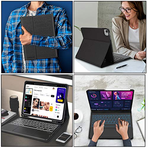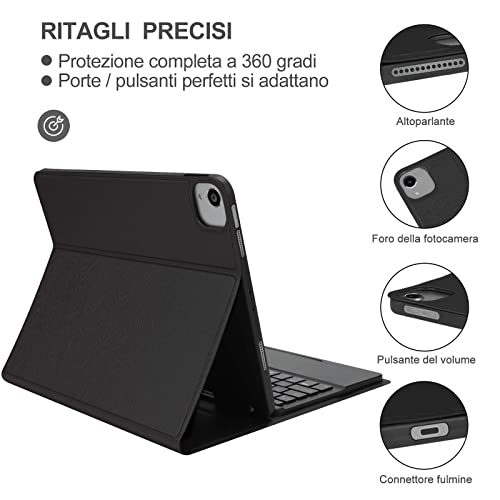 D DINGRICH Custodia con Tastiera Trackpad per iPad Air 10.9 2022/2020 (Air 5a Gen/Air 4a) - iPad Pro 11 2021/2020/2018, Cover con Tastiera Italiana QWERTY 7 Colori Retroilluminata con Touchpad, Nero