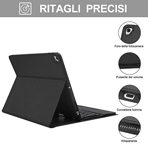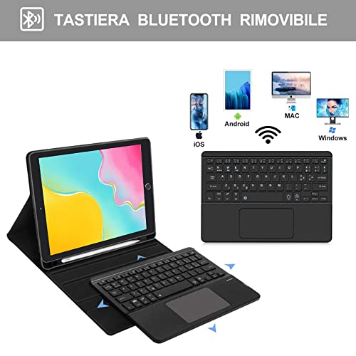 D DINGRICH Custodia con Tastiera Trackpad per iPad 10.2 /iPad 9a Gen/iPad 8 Gen/iPad 7a Gen/iPad Pro 10.5/iPad Air 3, Tastiera Italiana QWERTY Retroilluminata Rimovibile con Touchpad, Nero