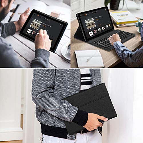 Materiale unico: La nostra cover per tastiera utilizza uno strato esterno in pelle PU a doppio strato di alta qualità e uno strato interno in plastica a nido d'ape antiscivolo, che fornisce un'eccellente protezione per l'uso quotidiano. La custodia posteriore in morbido TPU protegge il tablet da urti, cadute e impatti. Morbida fodera in microfibra con esterno in pelle PU, evita che il tablet si graffi.