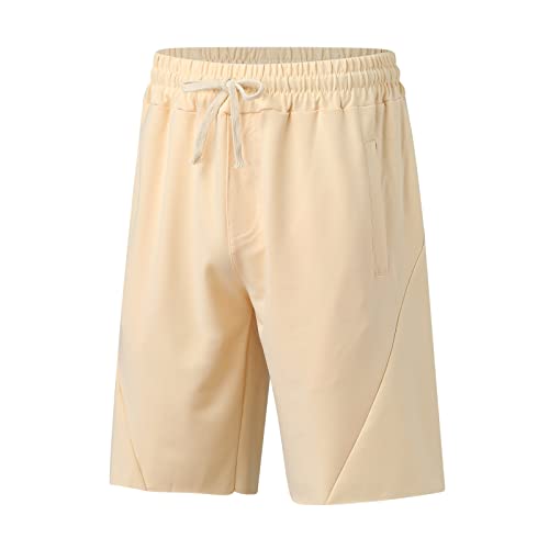 Dinnesis Pantaloncini da uomo, in cotone, comodi da indossare, per il tempo libero, estivi, da uomo, da basket, con coulisse, pantaloni sportivi, cachi, M