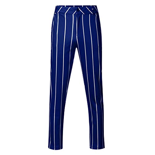 Dinnesis Pantaloni chino da uomo, a quadretti e strisce, eleganti, da business, slim fit, elasticizzati, per il tempo libero, a matita, pantaloni chino classici con chiusura lampo, Blu, XXL