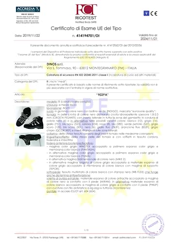 CERTIFICATO CE EN ISO 20345:2011 S3 HRO SRC (Regolamento (UE)2016/425)