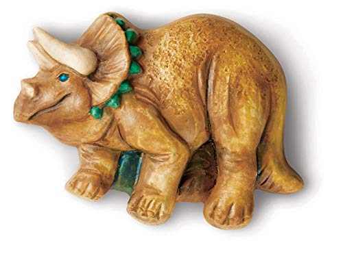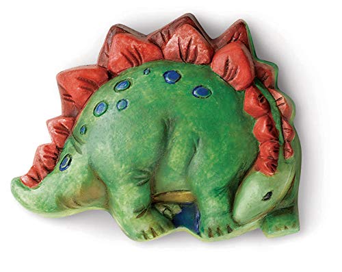 Contenuto del kit: 1 stampo con 6 formine, polvere di gesso, magneti, spillette, 1 set di vasetti di tempera con 6 colori, tempera fosforescente, pennello e istruzioni dettagliate. Il contenuto è sufficiente per realizzare 6 dinosauri