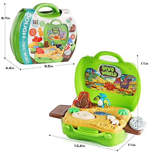 2 in 1 dinosauri playdough giocattoli, 37 pezzi Dino Theme Play Strumenti e stampi Accessori con Vulcano e Fossili per ragazzi e ragazze