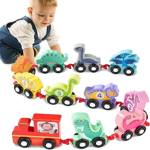 Dinosauri Trenino Legno Giocattolo,Giocattoli Educativi Montessori,Giochi Legno Bambini Anno Macchinine per Bambini Giochi Educativi,Gioco Treno Dinosauro per Bambini età 2 3 4 anni Natale Regalo