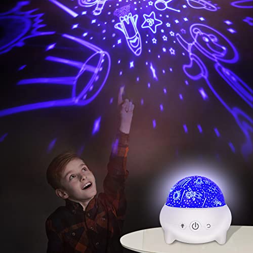 ✨ Film a tema spaziale: il proiettore spaziale proietta una varietà di modelli spaziali, come astronauta, razzo, UFO, alieno, galassia, stella, sole, luna, pianeta, astronauta e così via. La luce notturna del proiettore dell'astronauta sarebbe un perfetto giocattolo spaziale per i regali dei ragazzi per le ragazze dei ragazzi.