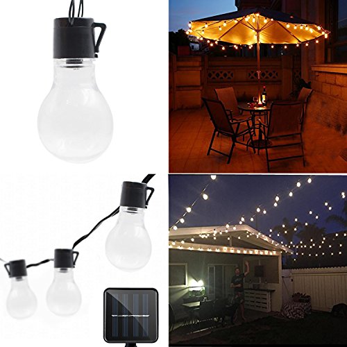 DINOWIN luci della stringa solare, Impermeabile 11.5ft 10LED Bulbi Luce,perfetto per patio,caffè, giardino,cerimonia nuziale,decorazione del partito (Bianco Caldo)