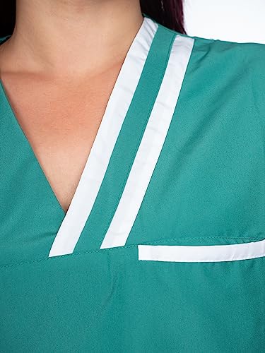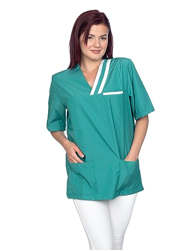 DINOZAVR Oliver Divisa Sanitaria Donna Uomo Unisex Medico Infermiere con Scollo a V e Maniche Corte Verde XS