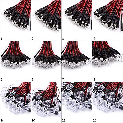 Diodi ad Emissione di diodi, 50 diodi LED Trasparenti precollegati Multicolori DC 9-12V 3 5 10mm(3mm-Luce Verde dei Capelli Bianchi)