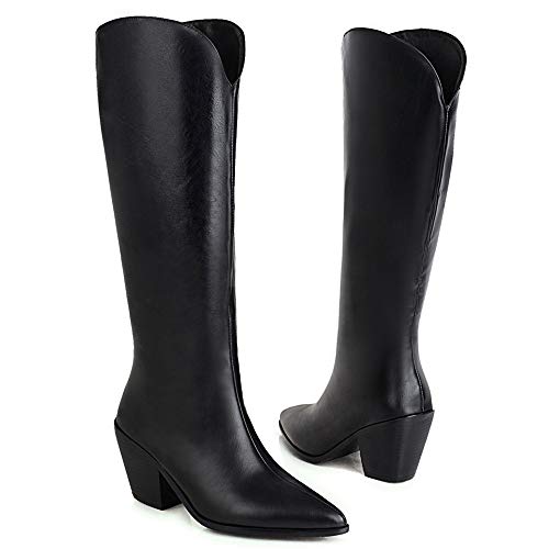 Si Diosa Moda Stivali Occidentali Ankle High Tacco a Blocco Donne Wide Calf Stivali Medi Pull on Plus Size Knee Stivali Heels Scarpe Invernali Black Size 39