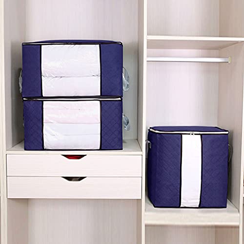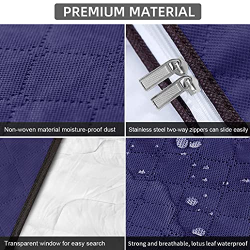 Dioxide 4PCS Custodia per Trapunte e Coperte, Porta Abiti Grande capacità con Manico Rinforzato, Organizzatore Pieghevole Traspirante con Cerniera in Acciaio Inossidabile 60x43x35 cm (blu)