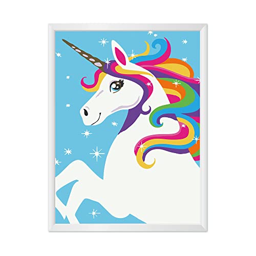 Dipingere con i Numeri Bambini, 5 6 7 anni Gioco Creativo Per Bambine e Bambini con Cornice 3 Pennelli e Colori Acrilici, 18 X 24 cm(Unicorno colorato)