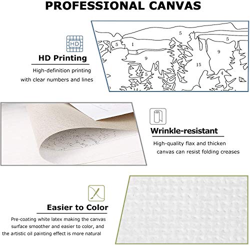 Dipinto a olio fai da te: pittura a olio fai da te adatta per tutti i livelli di difficoltà: per adulti, principianti, bambini, studenti, può aiutare ad alleviare lo stress, aiuta a stare lontano dalle radiazioni dovute al gaming ed all'elettronica. È un buon giocattolo educativo per i bambini per aiutarli a migliorare la coordinazione dei colori.