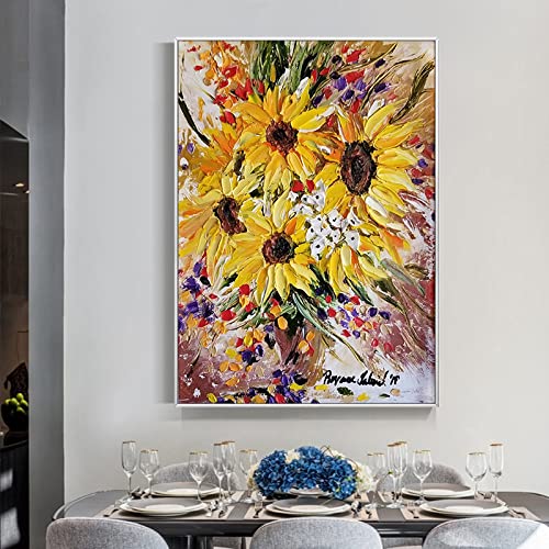 Dipinto a mano olio su tela Vincent Van Gogh Girasole Fiore verticale Riproduzione floreale classica Decorazione murale Frameless 3d Grande decorazione murale astratta Grande astratta Wall Art En