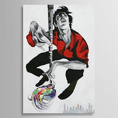 Dipinto a mano pittura a olio persone ragazzo immagina suonare la chitarra con telaio allungato