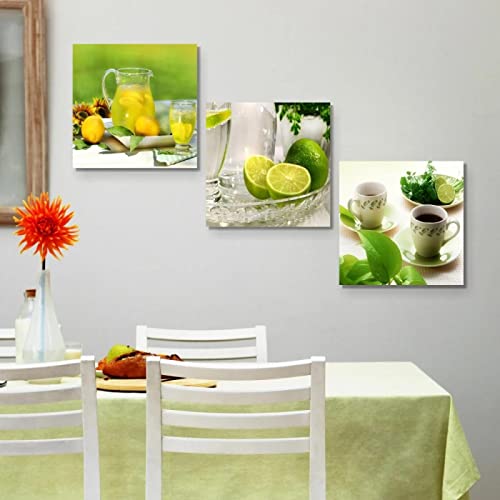 Dipinto moderna della cucina-3 pannelli verde frutta limone cucina poster-Stampa su tela-Quadri su tela per la decorazione della cucina 50x50cmx3Senza cornice