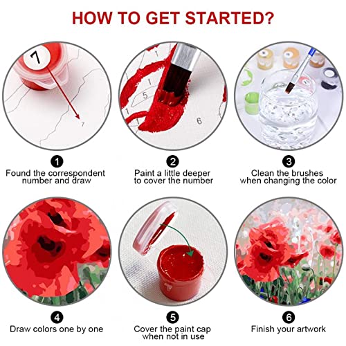 Contenuto della confezione: il nostro kit per pittura con numeri fai da te contiene tutto il necessario per completare questo dipinto, tra cui 1 tela testurizzata prestampata, un set di colori acrilici, 1 set di pennelli (inclusi 4 pezzi), 1 immagine di riferimento dei lavori finali.