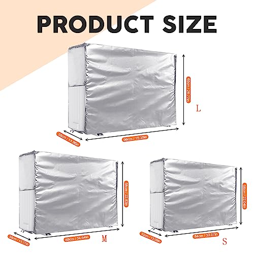 【3 taglie】: Copertura condizionatore esterno disponibile in 3 diverse taglie. S: 84*56*32cm, M: 88*58*35cm, L: 96*68*38cm, sono disponibili diverse dimensioni, adatte per unità interne ed esterne 1.5P-3P. Si prega di misurare l'aria condizionata interna ed esterna prima dell'acquisto.