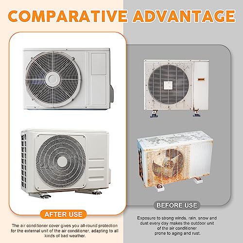 【Protezioni multiple】: copri condizionatore esterno universale è resistente alla neve, ai raggi UV, alla pioggia, alla polvere, al calore, al gelo, al vento, alla polvere e può essere utilizzato tutto l'anno, offrendo al tuo climatizzatore molteplici protezioni. Copri condizionatore esterno previene l'ossidazione e la ruggine dell'involucro del condizionatore d'aria, contribuendo a prolungarne la durata.