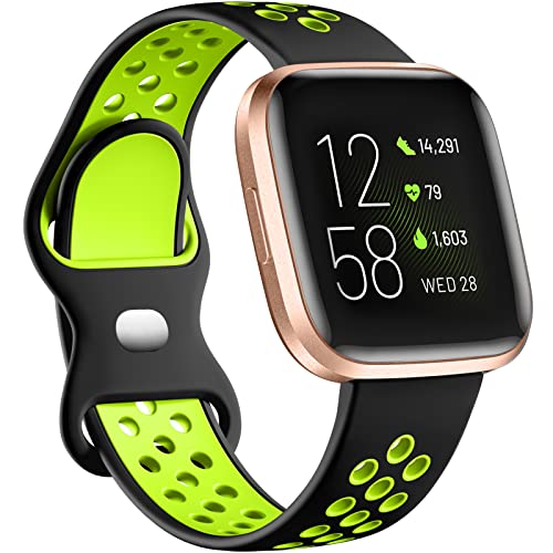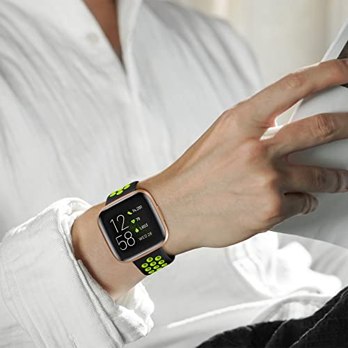 Dirrelo Cinturino Compatibile con Fitbit Versa 2 Cinturino/Fitbit Versa Lite Cinturino/Fitbit Versa Cinturino, Doppio Colore Silicone Sportivi Traspirante Cinturino per Donne Uomini, Nero/Verde L