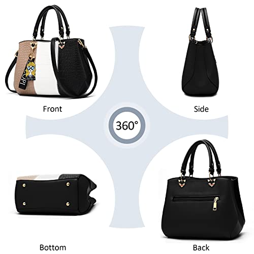 DIRRONA Borsa da Donna Design a Blocchi di Colore Borsa a Tracolla Viaggio Casuale Crossbody Borsa PU Pelle Tote Borse Commercio Nozze Scuola Borsa Tracolla Ornamenti di Moda Nero A