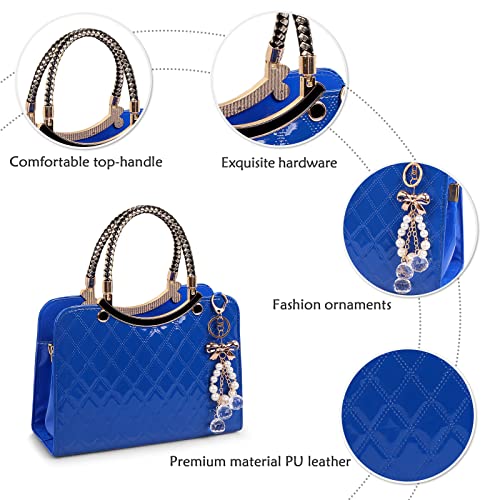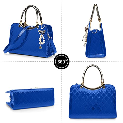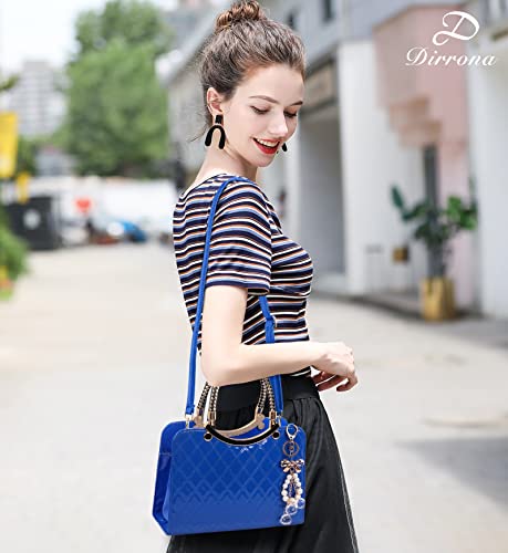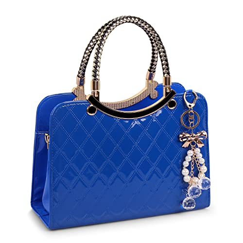 DIRRONA Classico Borsa Borse a Tracolla Casuale Rombo Borsa da Donna Lucido Borsa a Tracolla Viaggio Shopping Partito Work Nozze Ciondolo di Perle Blu