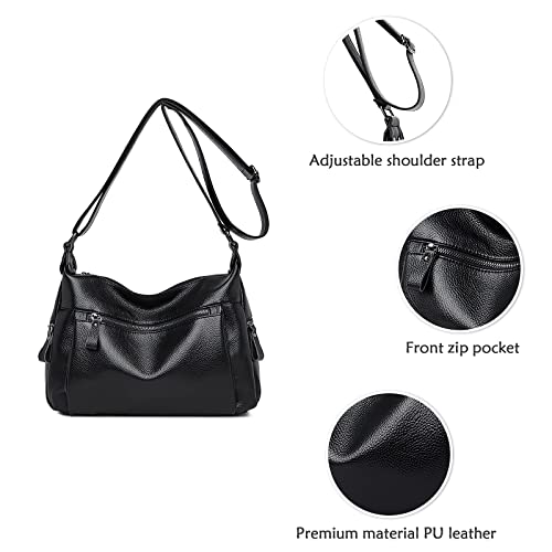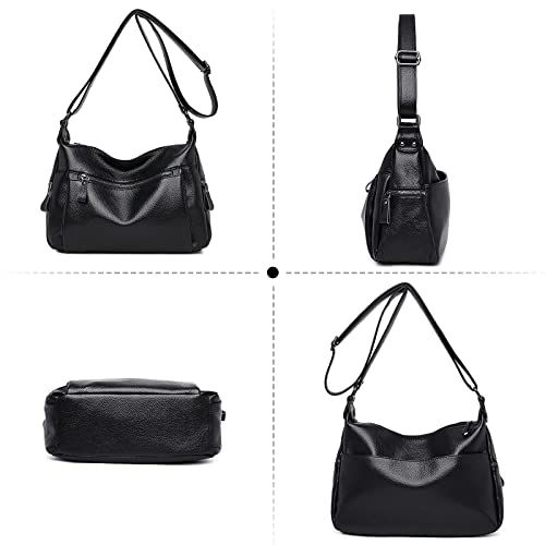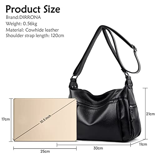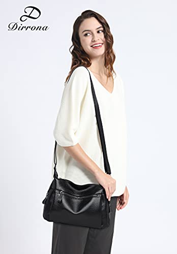 DIRRONA Elegante Donna Borsa a Tracolla Viaggio Borsetta Leggero Pelle Bovina Morbida Crossbody Grande Capacità Donna Casuale Borse a Tracolla Nero A