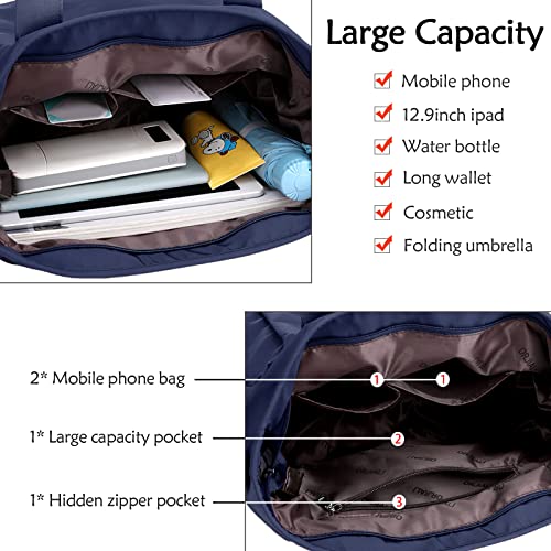 DIRRONA Moda Larga Borsa Donna Multitasche Borsa Tracolla Viaggio Casuale Messaggero Borsa Donna Borsa Shopper Scuola Uso Quotidiano Lavoro Multifunzione Impermeabile Nylon Borsa Blu