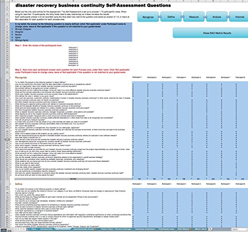 disaster recovery business continuity Self-Assessment ensures you don't miss anything: More than 630 critical disaster recovery business continuity success criteria in 7 RDMAICS (Recognize, Define, Measure, Analyze, Improve, Control and Sustain) steps with easy and quick navigating and answering for one or multiple participants