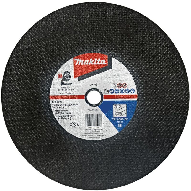 Adatto per sega da taglio de cordless Makita DLW140., Grana A36P-BF., Diametro: 355 mm, diametro de 25,4 mm, spessore de 2,5 mm., Centro piatto, applicazione: taglio de metallo, 5 pz.