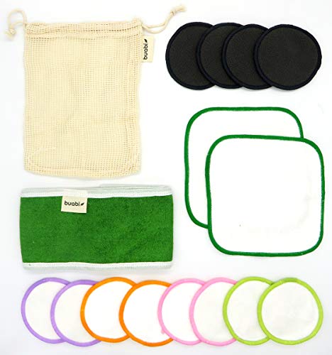 Dischetti struccanti riutilizzabili, ecologici, Morbidi e lavabili, Scatola con dischi di bambù, salviette, cerchietto e borsa per il lavaggio