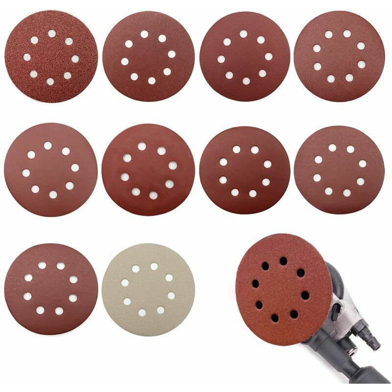 Assortimento di dischi abrasivi - 100 fogli di cuscinetti per dischi abrasivi da 125 mm, 10 carta vetrata assortita con diverse grane, da ruvida a fine, 80/180/240/400/800/1000/1200/1500/2000/ Grana 3000, 10 pezzi di ogni tipo, totale 100 pezzi, Quasi tutti i requisiti di lucidatura sono soddisfatti. 【Compatibilità】 I dischi abrasivi con 100 pezzi hanno un diametro di 125 mm e si adattano a qualsiasi levigatrice orbitale casuale di marca. Gli 8 fori sono progettati per un'efficiente aspirazione della polvere, fornendo un perfetto effetto di pulizia e lucidatura. 【Alta qualità】I dischi abrasivi in allumina di alta qualità, realizzati in allumina abrasiva, con trattamento termico speciale, forniscono un'eccellente lucidatura, nitidezza e resistenza all'usura. Durevole e antistatico, buona scelta per levigare e lucidare. 8 fori sono progettati per un'efficiente estrazione della polvere. 【Facile da usare】: gancio e anello, facile e veloce da attaccare, forte e durevole, non cade durante
