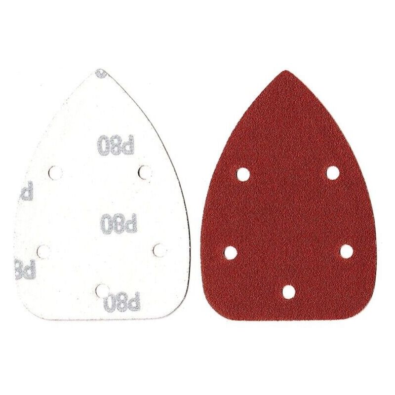 SET 10 DISCHI ABRASIVI A DELTA100 X 140 mm CON FISSAGGIO A STRAPPO GRANA 80 SET DI 10 DISCHI CON FISSAGGIOA STRAPPO DI FORMA TRIANGOLARE ( A DELTA ) PERLEVIGATRICI PALMARI/MOUSE.MISURA 100 X 140 mm10 PEZZI -- GRANA 80