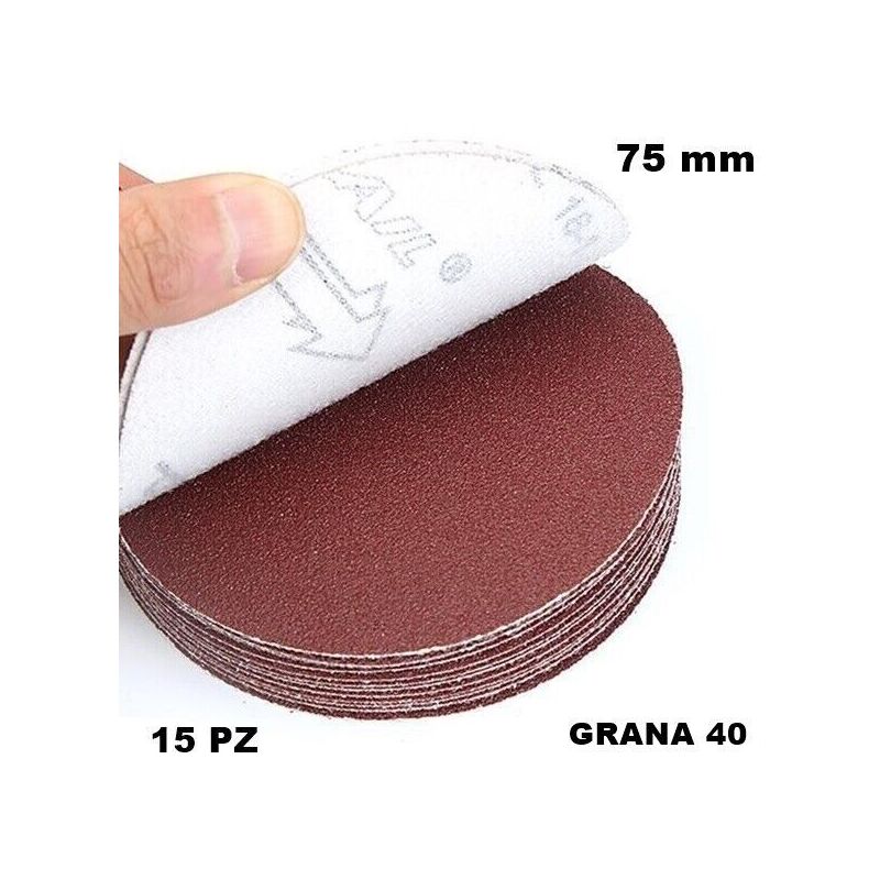 DISCHI DI CARTA VETRATA DA 75 mm PER SMERIGLIATRICE ANGOLARE AD ARIA COMPRESSA GRANA 40.SET DI DISCHI DI CARTA VETRATA CON FISSAGGIO A STRAPPO DI DIAMETRO 75 mm PER SMERIGLIATRICI ANGOLARI PNEUMATICHE.GRANA 4015 PEZZI.