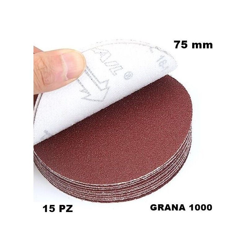 DISCHI DI CARTA VETRATA DA 75 mm PER SMERIGLIATRICE ANGOLARE AD ARIA COMPRESSA GRANA 1000.SET DI DISCHI DI CARTA VETRATA CON FISSAGGIO A STRAPPO DI DIAMETRO 75 mm PER SMERIGLIATRICI ANGOLARI PNEUMATICHE.GRANA 100015 PEZZI.