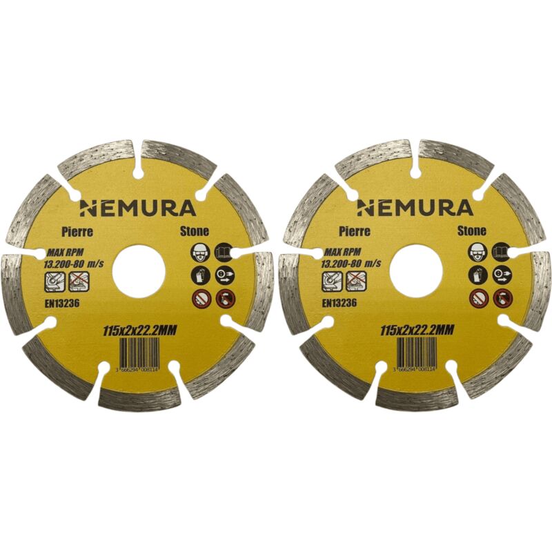 Set di 2 dischi diamantati da 115 mm per pietra e mattoni (115 x 2,0 x 22,2MM)