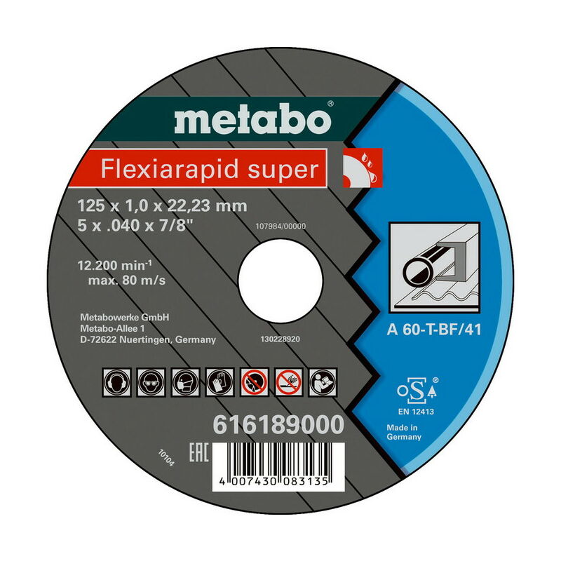 : A 60-T Diametro x spessore x foro: 125 x 1 x 22,23 mm Modello: diritto Velocità di rotazione max.: 12200 /min Unitàé vendite/unità confezione: 1 / 25