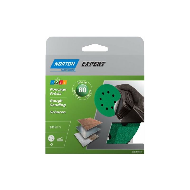 Norton - pex rudimentali dischi abrasivi con 8 fori, diametro 115 mm Grana 80.