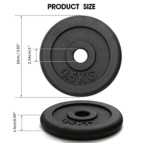 KK Set di dischi in ghisa. Coppia di dischi in ghisa da 1 pollice. 2 x 2,5 kg, 5 kg o 10 kg, dischi per manubri per allenamento a casa o in palestra o sollevamento pesi. (4 x 0,5 kg)