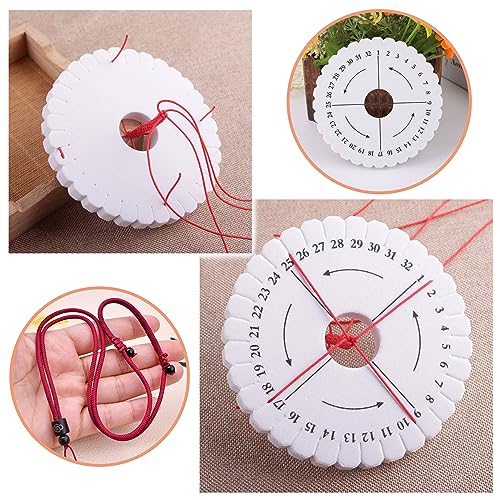 Set di tavole intrecciate: La confezione contiene 1 tavola intrecciata rotonda (10 cm di diametro, 32 scanalature).Le scanalature sul bordo del disco possono ottenere una tessitura antiscivolo.Questo è uno strumento che può essere utilizzato per tessere braccialetti.