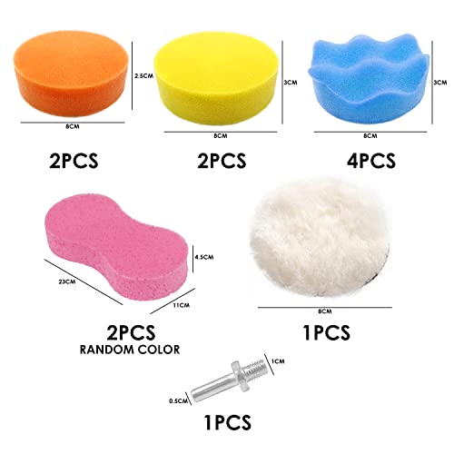 Pratico set di lucidatura: le spugne di diversi colori hanno diversa morbidezza, soddisfano le diverse esigenze di lucidatura, sono adatte per lucidare aree ruvide e piccole, possono essere utilizzate su lucidatrici pneumatiche o elettriche;