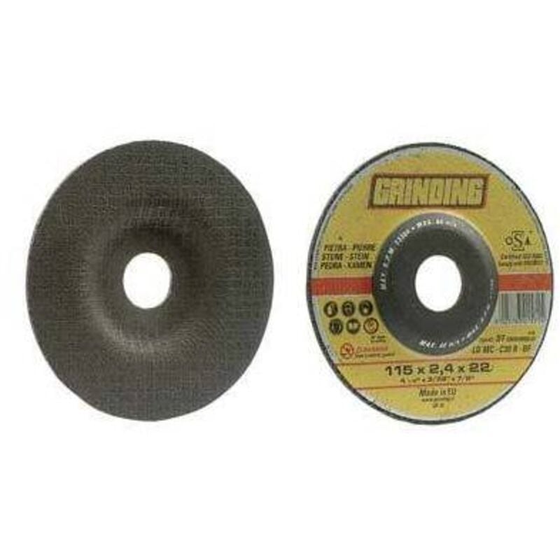 Dischi Grinding abrasivi per marmo Abrasivo al Carburo di Silicio. Disco da taglio a centro depresso per pietra. Applicazione: Materiali per l'edilizia a media durezza, taglio classico su cemento, mattoni, pietra Certificazioni OSA - EN 12413 Ø 230x2,4 mm. - Foro 22,2